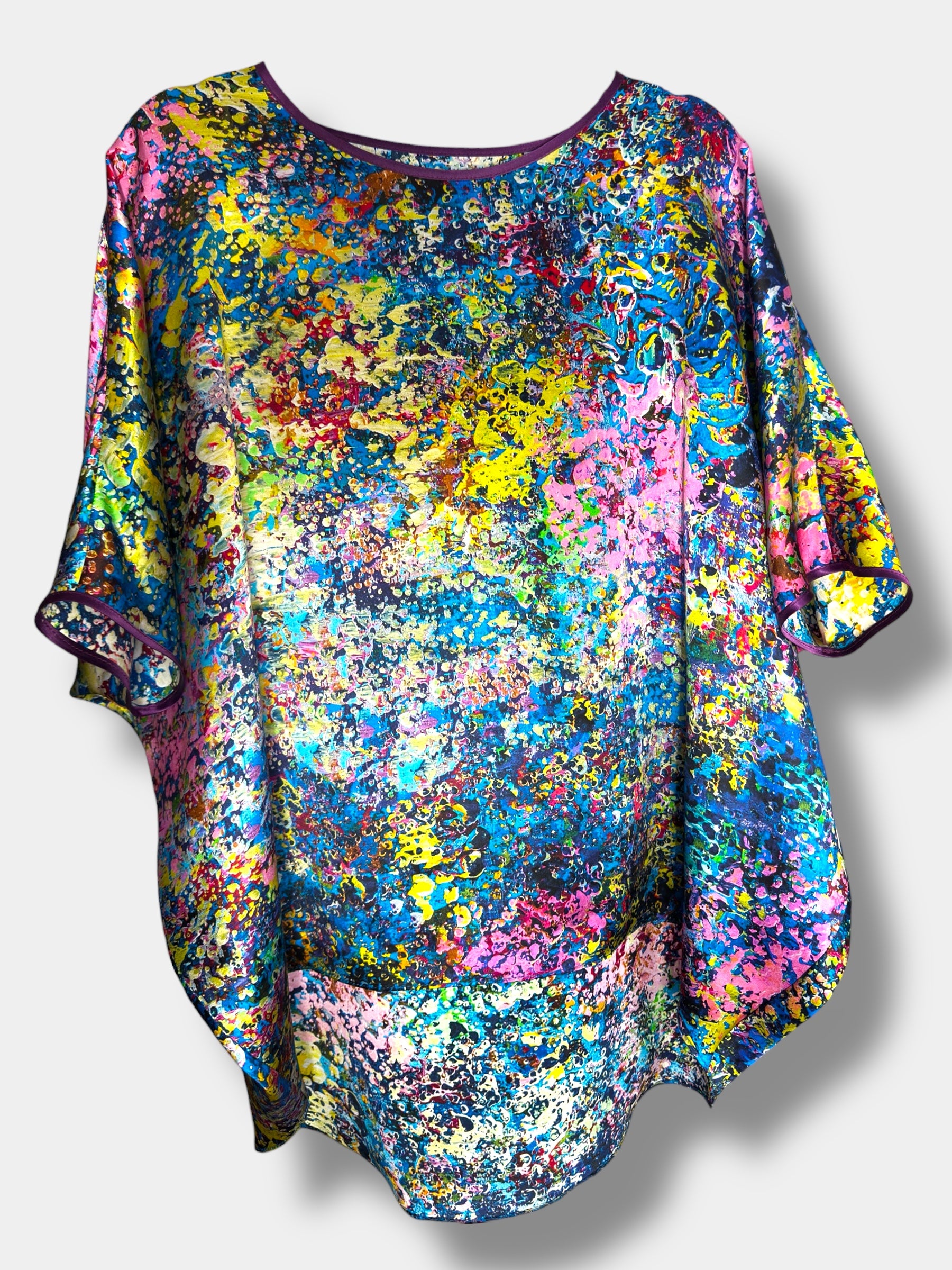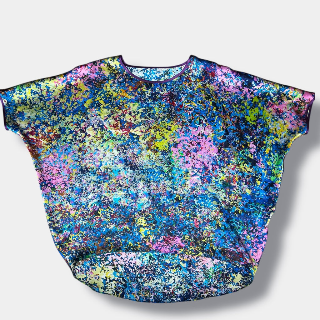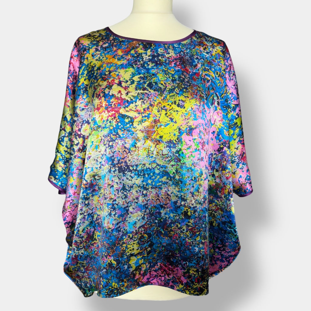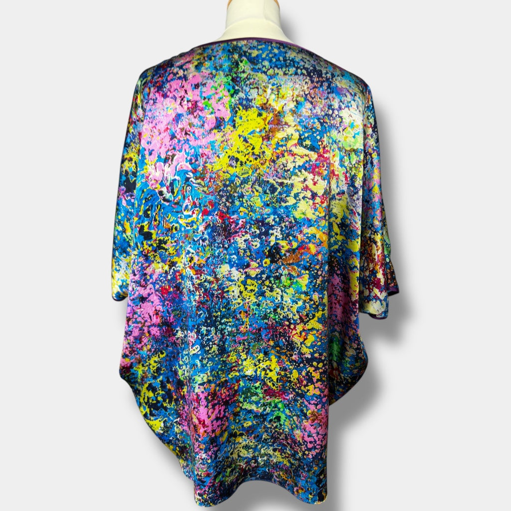 Cette blouse en soie fait partie de la capsule « Neptune’s Garden », une série limitée créée à partir de la peinture originale de Natalia Brooks intitulée « Neptune’s Garden ».