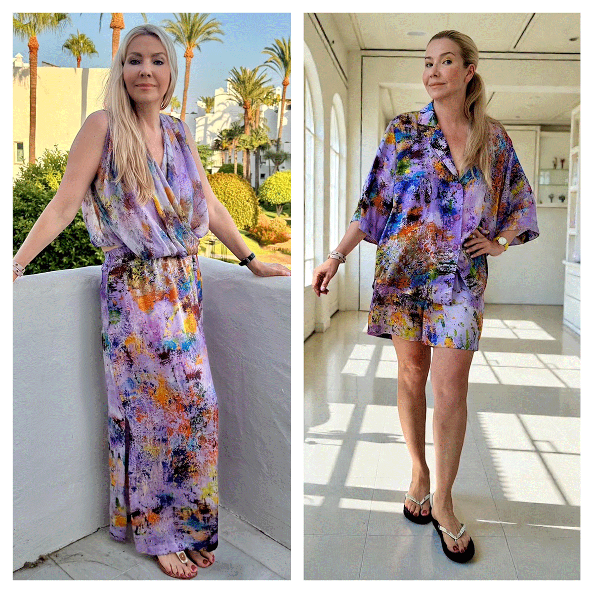 Thanks to the mix of printed and solid silk, each Art Wear item becomes adaptive: fitting into a city rhythm, a resort atmosphere, daily life, or an evening look.