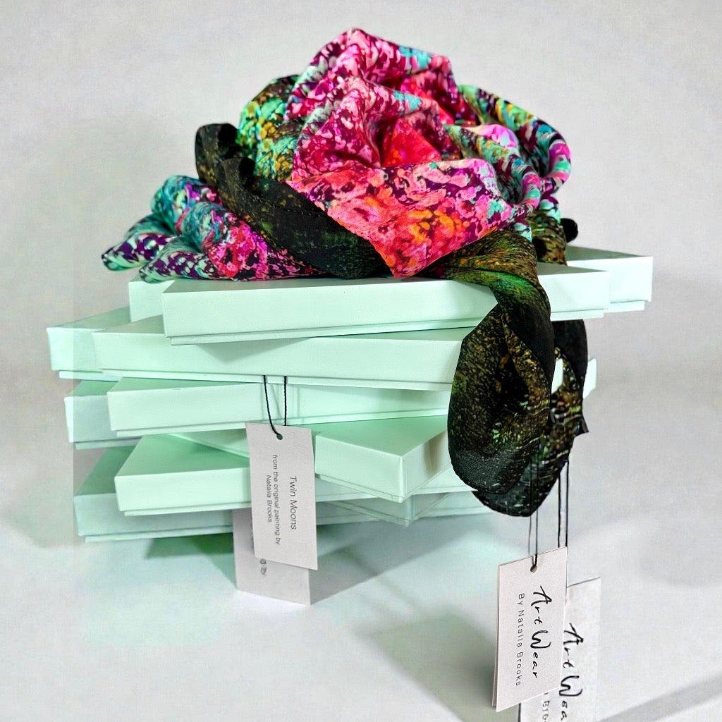Art Wear by Natalia Brooks offers silk scarves created from original artworks and produced in Como, Italy, as refined corporate gifts for companies and organizations. These pieces are selected by marketing and communication teams seeking distinctive gifts for clients, partners, and professional occasions, combining artistic value, craftsmanship, and thoughtful presentation.